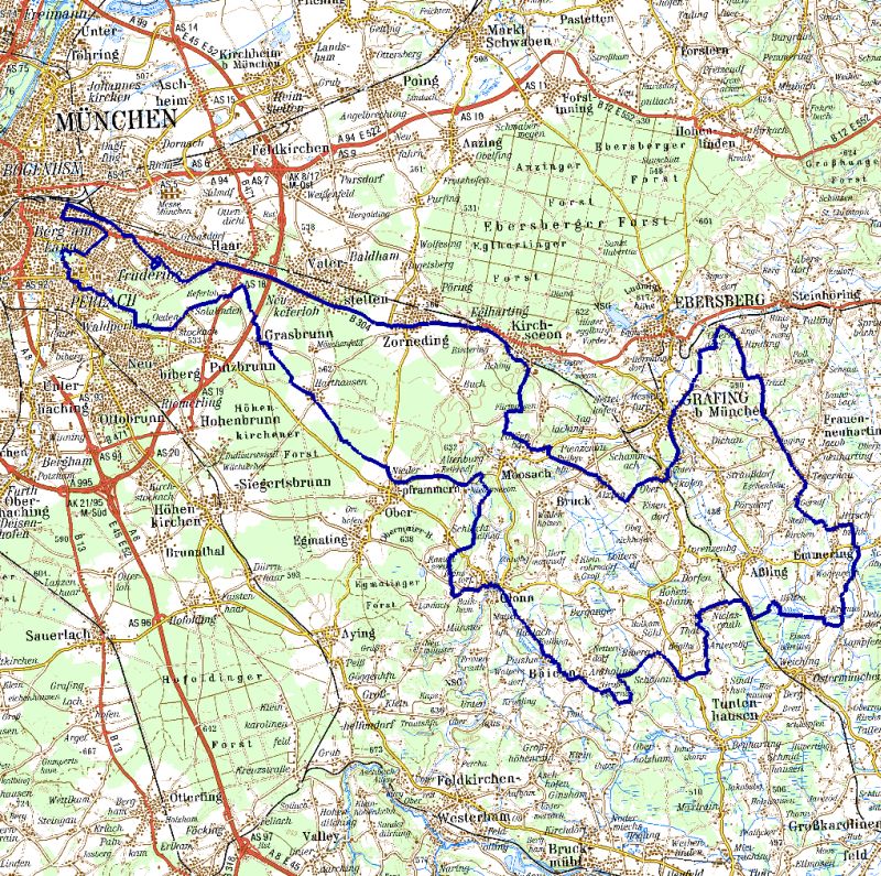 Raus nach Kirchseeon, dann führte die Strecke über Falkenberg, Alxing, Elkofen runter nach Grafing und in Richtung Oberndorf.